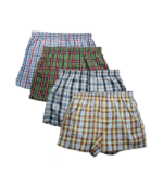 4-pack men’s woven cotton boxer shorts made from 100% combed cotton. Loose, breathable plaid underwear with classic comfort fit.