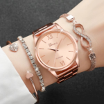 4pcs Women’s Rhinestone Quartz Watch & Bracelet Set