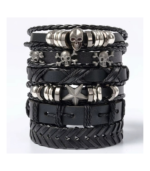 This 6-piece set combines PU leather bands with alloy accents, featuring skulls, stars, and other punk-inspired motifs. Because of its mix of textures and designs, it can be worn individually or stacked together for maximum impact.