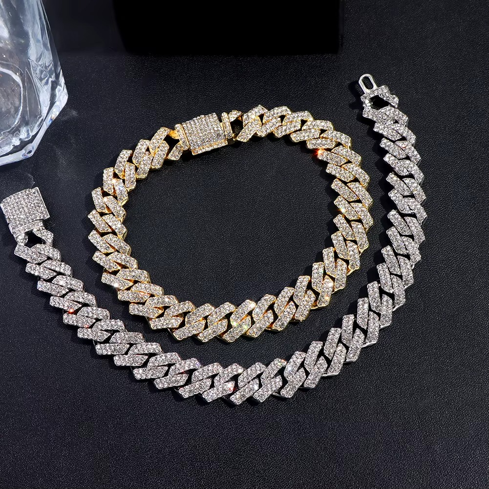This chunky Miami cuban bracelet features a full rhinestone prong-set design that delivers a bright, eye-catching shine.
