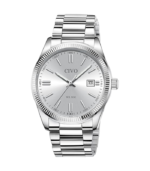 This men’s stainless steel analog watch features a classic silver design suitable for everyday and dress wear. It offers clear readability, reliable performance, and a clean, minimalist appearance.