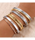 Crafted from high-quality stainless steel, this engraved bracelet offers durability and a smooth finish. Because of its clean bar design and cuff structure, it provides a modern and elegant look that complements different outfits.